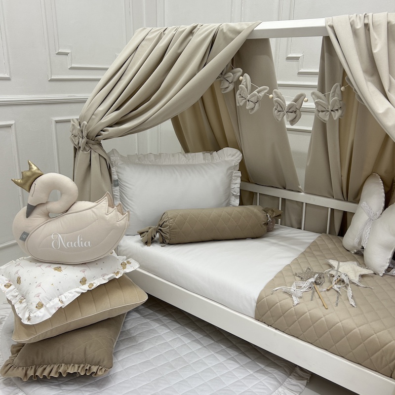 Baldachim / zasłonka na łóżko domek VELVET - kość słoniowa