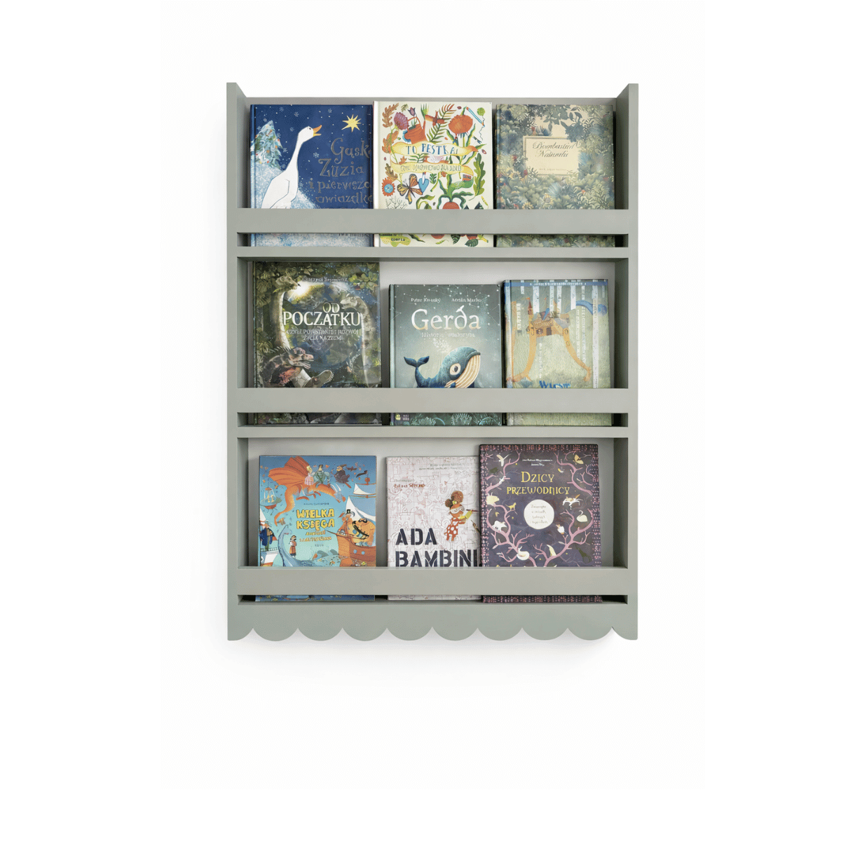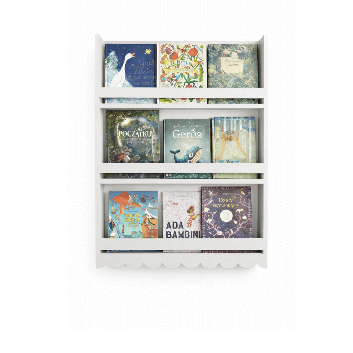 Półka posiada trzy praktyczne poziomy, które pomieszczą ulubione bajki, albumy, komiksy, a także drobne zabawki czy dekoracje. Frontowe listwy utrzymują książki w stabilnej pozycji, dzięki czemu ich okładki są dobrze widoczne – to rozwiązanie szczególnie wspiera rozwój zainteresowania czytaniem u najmłodszych.