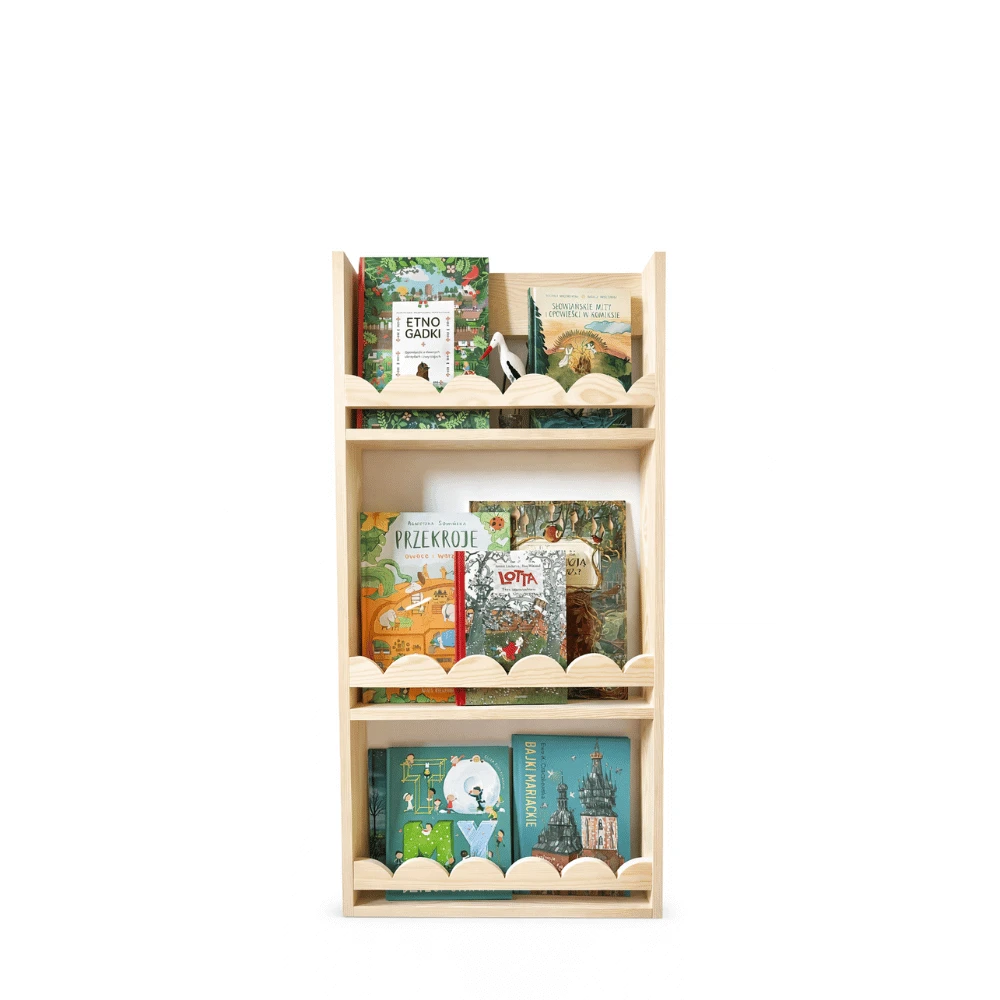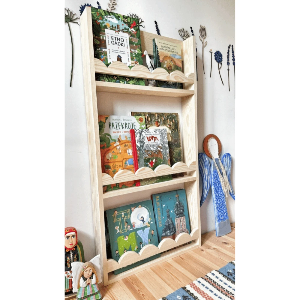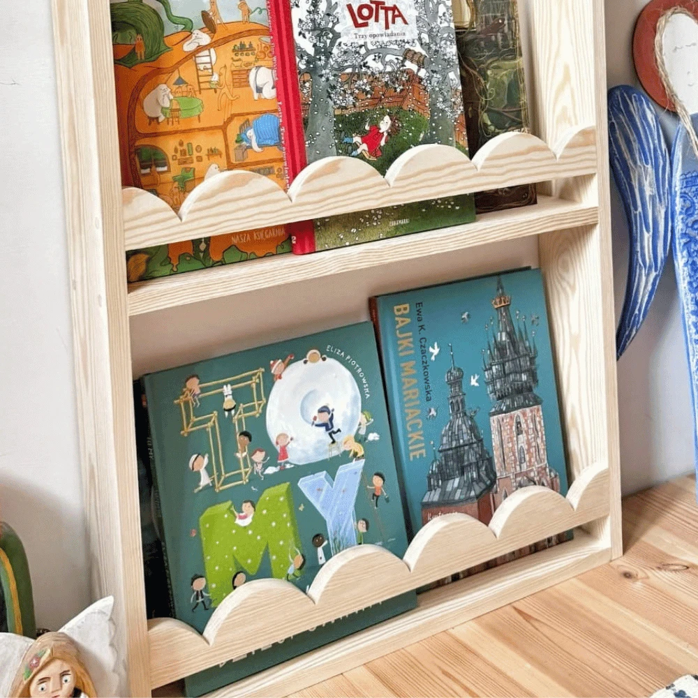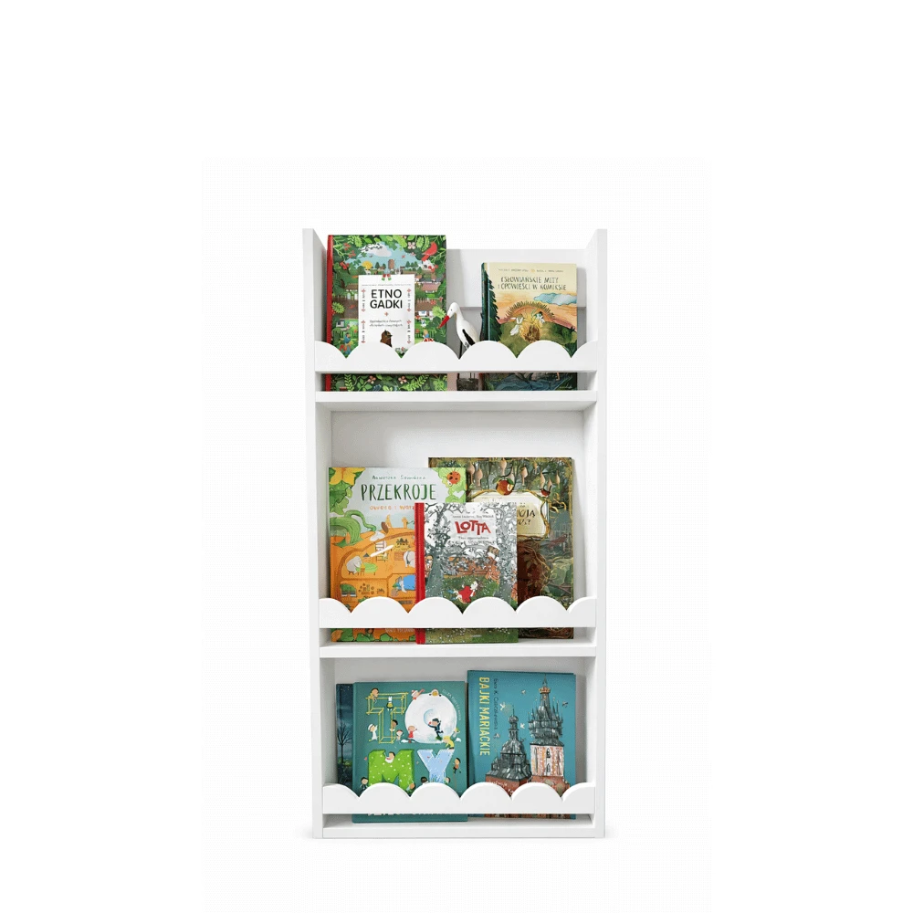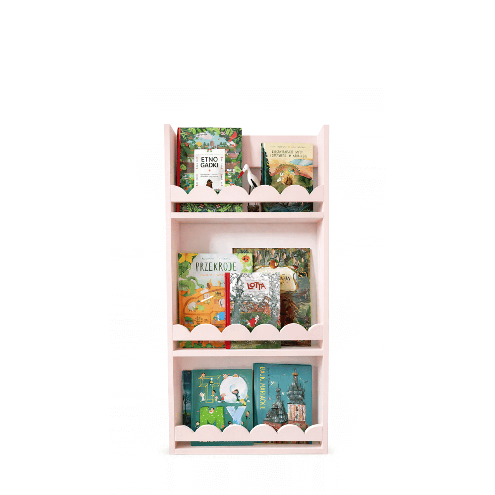 Biblioteczka z falbanką to stylowa i funkcjonalna półka na książki do pokoju dziecka, która pomaga uporządkować dziecięce książeczki i jednocześnie stanowi piękną dekorację wnętrza. Charakterystycznym elementem mebla jest ozdobne wykończenie półek w formie delikatnej falbanki, które nadaje biblioteczce wyjątkowego, dziecięcego charakteru.