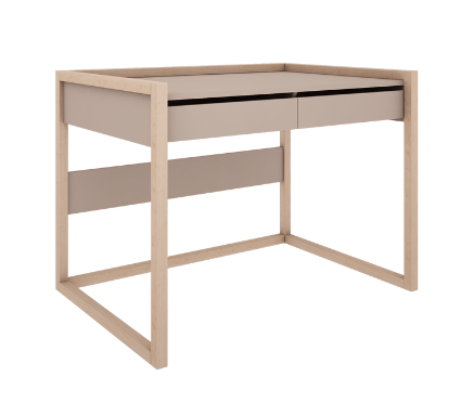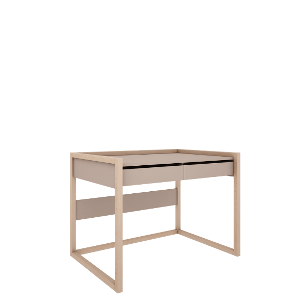 Biurko idealne do pokoju dziewczynki i chłopca. Posiada szeroki blat o wymiarach 100 cm na 70 cm, oferując dużo miejsca do nauki i pracy. Wyposażone w dwie szuflady z samodomykiem zapewnia wygodne przechowywanie. Nogi biurka z naturalnego drewna bukowego dodają ciepła i przytulności wnętrzu, łącząc nowoczesny design z naturalnymi materiałami.
