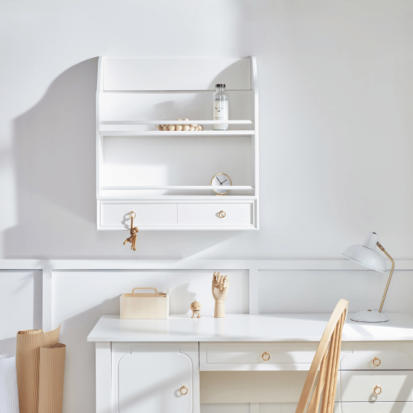 Biurko Bellamy Royal białe zostało zaprojektowane tak, aby ułatwiać codzienne funkcjonowanie i dobrze organizować przestrzeń w pokoju dziecka. To praktyczne biurko dziecięce, które pomaga uporządkować książki, zeszyty, przybory szkolne, akcesoria i dziecięce drobiazgi, a przy tym zachowuje elegancki, ponadczasowy wygląd.