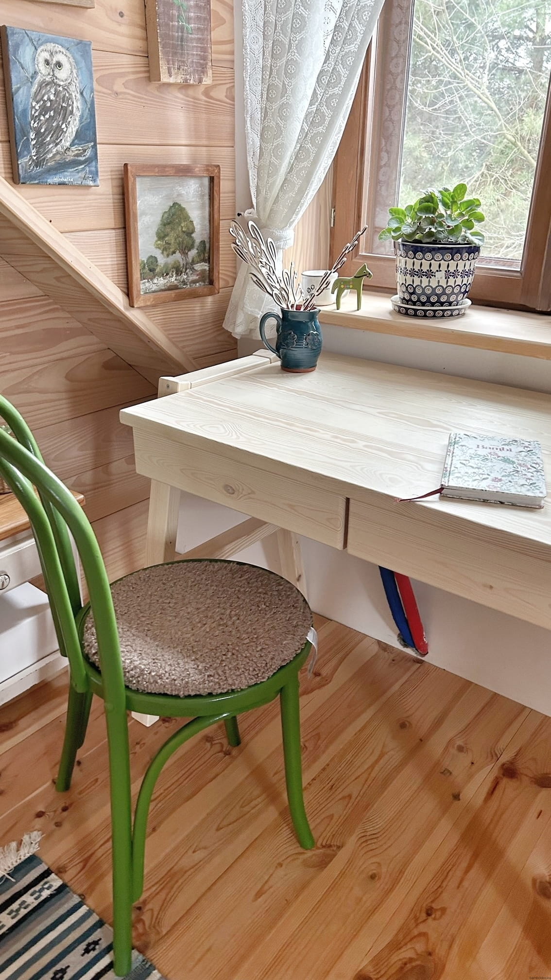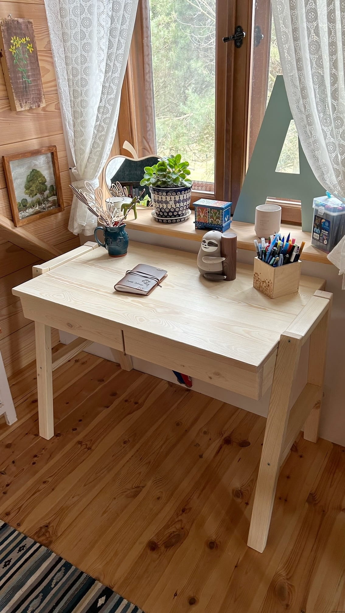 Wersja naturalna - w wyborze oznacza, że całe biureczko jest lakierowane na bezbarwny kolor (bez elementów kolorowych).