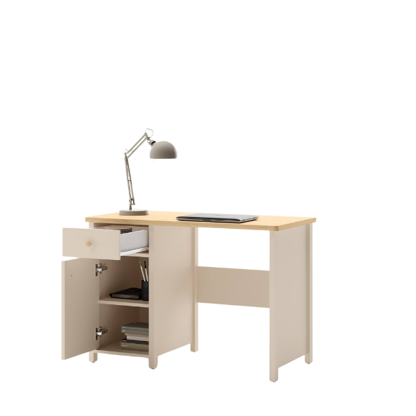 Funkcjonalne i stylowe biurko dziecięce Story to idealne miejsce do nauki, rysowania, zabawy i rozwijania pasji. Dzięki szerokości 110 cm oraz przemyślanemu układowi z szufladą, drzwiczkami i praktyczną półką, biurko zapewnia wygodę użytkowania i wystarczającą przestrzeń roboczą zarówno dla młodszych dzieci, jak i starszych uczniów. To mebel, który wspiera codzienną organizację i pomaga utrzymać porządek w strefie nauki.