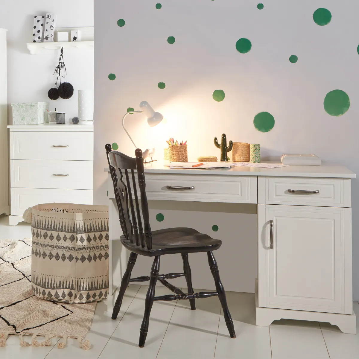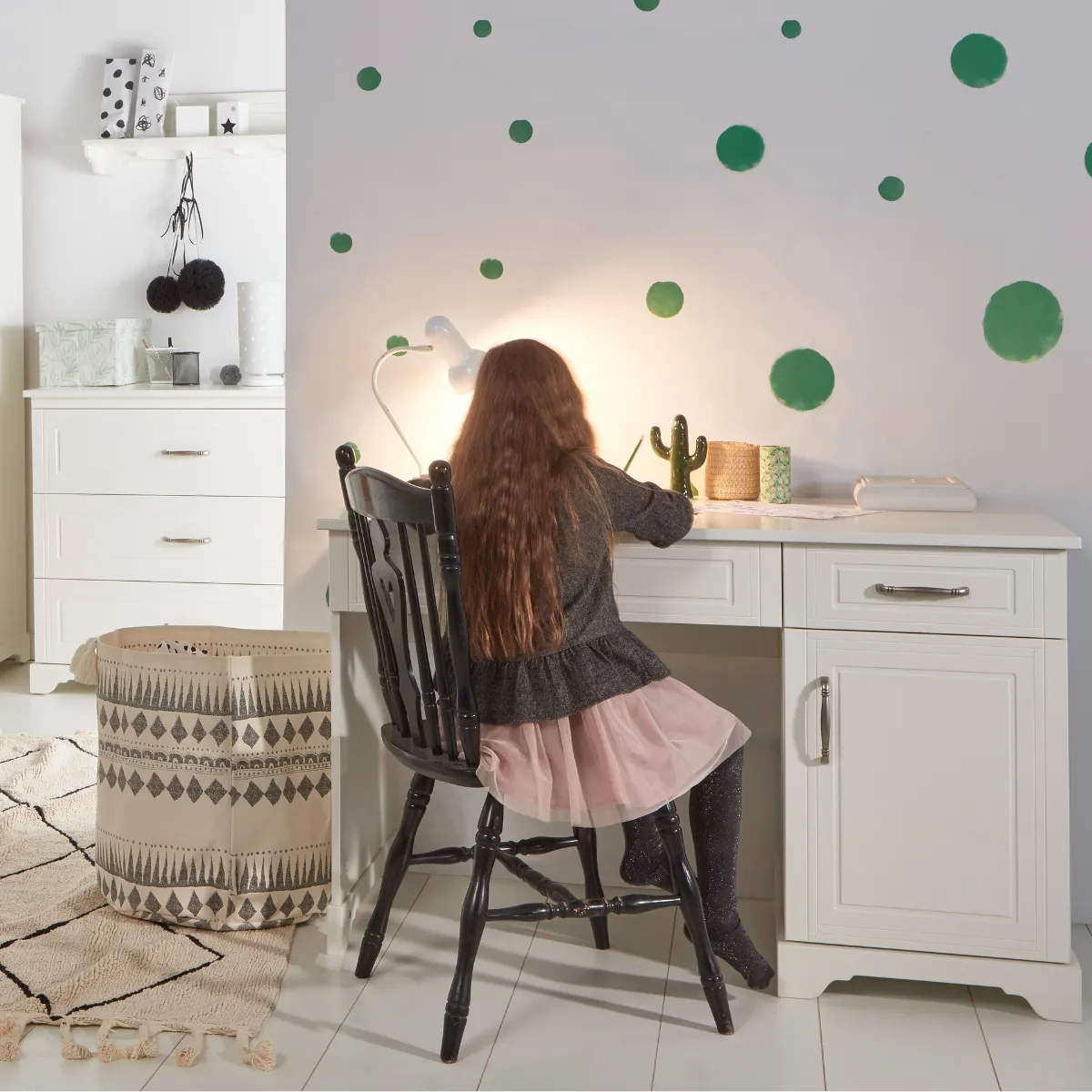 Biurko pomaga dobrze wykorzystać przestrzeń w pokoju dziecka i zapewnia wygodne miejsce na naukę, rysowanie, czytanie oraz akcesoria.