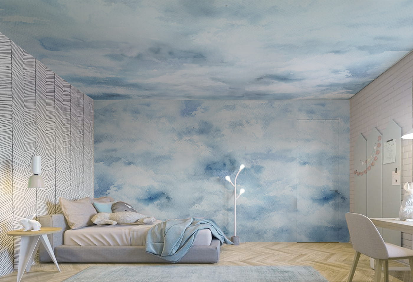 Idealna tapeta do pokoju dziecka w każdym wieku powinna być uniwersalna i spokojna. Przedstawiona tapeta z motywem nieba doskonale spełnia te wymagania. Kolor tła jest błękitny, z delikatnymi przejściami odcieni, które naśladują chmury. Wzór ten wprowadza do pokoju atmosferę spokoju i relaksu, jednocześnie nie dominując wnętrza. Dzięki swojej neutralności i subtelności, tapeta ta będzie pasować zarówno do pokoju niemowlaka, jak i starszego dziecka, roztaczając wokół poczucie przestrzeni i świeżości.