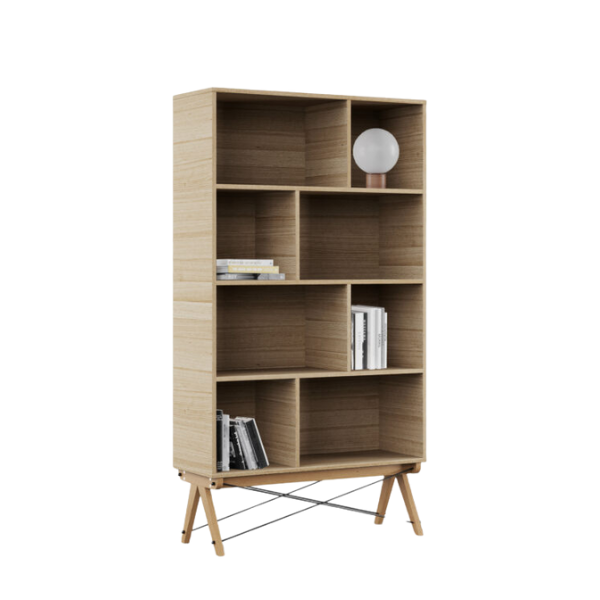 Regał TALL to doskonała propozycja do pokoju dziecka i nastolatka, który potrzebuje przestrzeni zarówno na książki, jak i na swoje codzienne skarby. Dzięki aż ośmiu asymetrycznym półkom, regał oferuje mnóstwo miejsca na ulubione lektury, kolekcje zabawek, pamiątki z podróży, szkolne akcesoria czy dekoracje, które nadadzą wnętrzu osobistego charakteru.