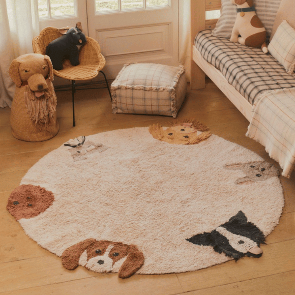 Ten wyjątkowy dywan to nie tylko dekoracja, ale prawdziwy towarzysz dziecięcych zabaw. Jego interaktywny design z uroczymi psimi mordkami zachęca najmłodszych do dotykania, odkrywania i kreatywnej zabawy.