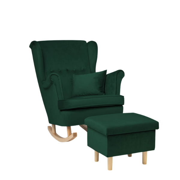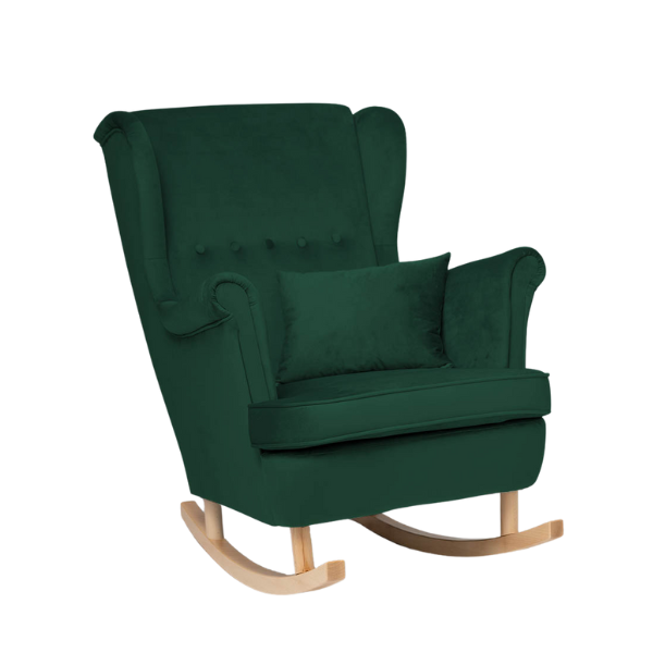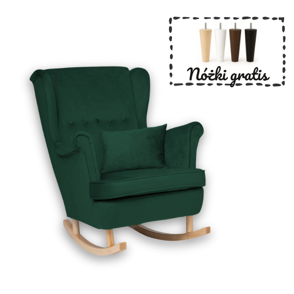 Poznaj nasz wyjątkowy fotel welurowy do karmienia, który łączy w sobie wygodę, funkcjonalność i elegancki design. Stworzony z myślą o mamach i maluszkach, ten uszak z płozami do bujania stanie się niezastąpionym elementem dziecięcego pokoju lub salonu. Ergonomicznie zaprojektowane oparcie oraz wysokie podłokietniki zapewniają idealne podparcie pleców i ramion, co ma kluczowe znaczenie podczas karmienia czy chwil relaksu. Głębokie, miękkie siedzisko gwarantuje komfort nawet podczas długiego siedzenia. Delikatna funkcja bujania wprowadza w błogi nastrój i pomaga maluszkowi zasnąć – idealna na wieczorne wyciszenie. W zestawie GRATIS otrzymujesz również poduszkę, która zwiększa wygodę użytkowania. Co więcej, do fotela dołączamy komplet nóżek – gratis – które pozwolą Ci łatwo zamienić fotel bujany w klasyczny, stabilny mebel. Dzięki temu możesz dostosować go do swoich potrzeb i wystroju wnętrza. Klasyczny styl fotela typu uszak, w nowoczesnym wydaniu i modnej kolorystyce, sprawi, że stanie się on pięknym i praktycznym dodatkiem w Twoim domu. Wykonany z trwałych, wysokiej jakości materiałów fotel zapewnia stabilność oraz wytrzymałość na lata. Jeśli szukasz wygodnego i stylowego fotela do karmienia i relaksu – ten model będzie strzałem w dziesiątkę!