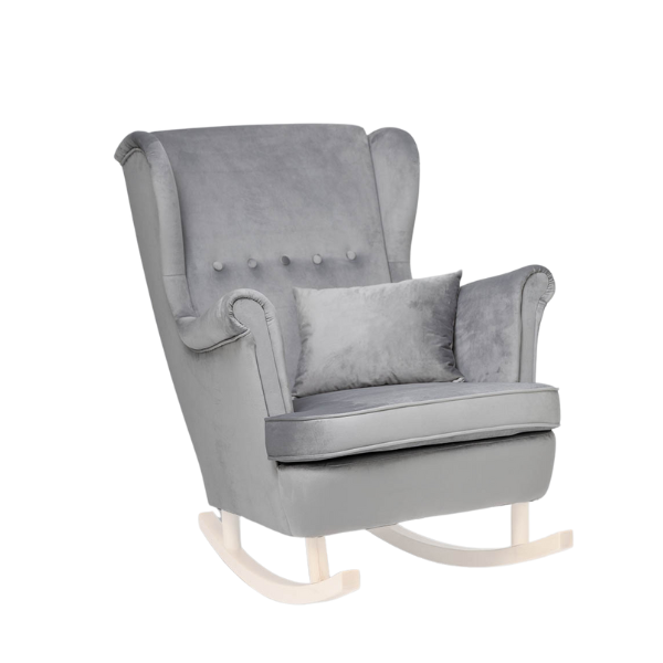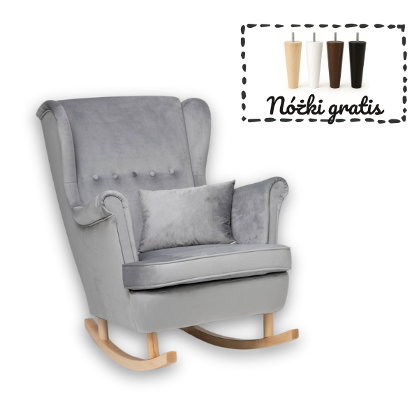 Poznaj nasz wyjątkowy fotel welurowy do karmienia, który łączy w sobie wygodę, funkcjonalność i elegancki design. Stworzony z myślą o mamach i maluszkach, ten uszak z płozami do bujania stanie się niezastąpionym elementem dziecięcego pokoju lub salonu. Ergonomicznie zaprojektowane oparcie oraz wysokie podłokietniki zapewniają idealne podparcie pleców i ramion, co ma kluczowe znaczenie podczas karmienia czy chwil relaksu. Głębokie, miękkie siedzisko gwarantuje komfort nawet podczas długiego siedzenia. Delikatna funkcja bujania wprowadza w błogi nastrój i pomaga maluszkowi zasnąć – idealna na wieczorne wyciszenie. W zestawie GRATIS otrzymujesz również poduszkę, która zwiększa wygodę użytkowania. Co więcej, do fotela dołączamy komplet nóżek – gratis – które pozwolą Ci łatwo zamienić fotel bujany w klasyczny, stabilny mebel. Dzięki temu możesz dostosować go do swoich potrzeb i wystroju wnętrza. Klasyczny styl fotela typu uszak, w nowoczesnym wydaniu i modnej kolorystyce, sprawi, że stanie się on pięknym i praktycznym dodatkiem w Twoim domu. Wykonany z trwałych, wysokiej jakości materiałów fotel zapewnia stabilność oraz wytrzymałość na lata. Jeśli szukasz wygodnego i stylowego fotela do karmienia i relaksu – ten model będzie strzałem w dziesiątkę!