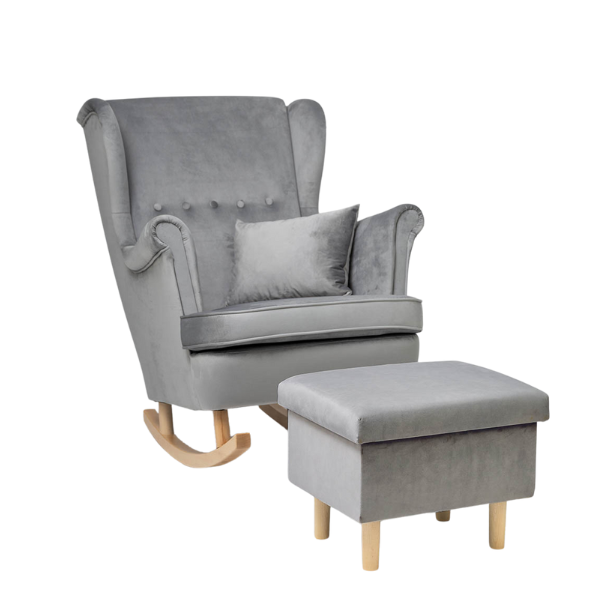 Welurowy fotel do karmienia z funkcją bujania – komfort i styl w jednym!