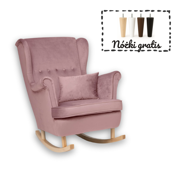 Poznaj nasz wyjątkowy fotel welurowy do karmienia, który łączy w sobie wygodę, funkcjonalność i elegancki design. Stworzony z myślą o mamach i maluszkach, ten uszak z płozami do bujania stanie się niezastąpionym elementem dziecięcego pokoju lub salonu. Ergonomicznie zaprojektowane oparcie oraz wysokie podłokietniki zapewniają idealne podparcie pleców i ramion, co ma kluczowe znaczenie podczas karmienia czy chwil relaksu. Głębokie, miękkie siedzisko gwarantuje komfort nawet podczas długiego siedzenia. Delikatna funkcja bujania wprowadza w błogi nastrój i pomaga maluszkowi zasnąć – idealna na wieczorne wyciszenie. W zestawie GRATIS otrzymujesz również poduszkę, która zwiększa wygodę użytkowania. Co więcej, do fotela dołączamy komplet nóżek – gratis – które pozwolą Ci łatwo zamienić fotel bujany w klasyczny, stabilny mebel. Dzięki temu możesz dostosować go do swoich potrzeb i wystroju wnętrza. Klasyczny styl fotela typu uszak, w nowoczesnym wydaniu i modnej kolorystyce, sprawi, że stanie się on pięknym i praktycznym dodatkiem w Twoim domu. Wykonany z trwałych, wysokiej jakości materiałów fotel zapewnia stabilność oraz wytrzymałość na lata. Jeśli szukasz wygodnego i stylowego fotela do karmienia i relaksu – ten model będzie strzałem w dziesiątkę!