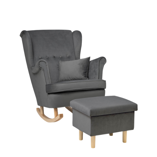 Welurowy fotel do karmienia z funkcją bujania – komfort i styl w jednym!