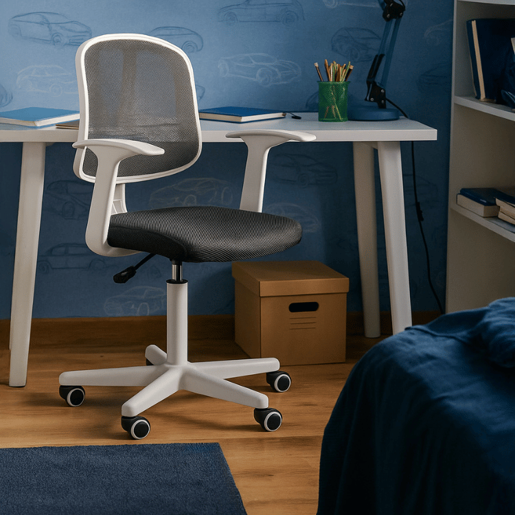 Dzięki regulacji wysokości siedziska fotel łatwo dopasowuje się do wzrostu dziecka i „rośnie” razem z nim, co czyni go praktycznym wyborem na wiele lat. Elastyczne oparcie, którego kąt nachylenia dopasowuje się do pleców użytkownika, wspiera kręgosłup i zmniejsza napięcie mięśni podczas dłuższego siedzenia przy biurku. Oparcie wykonane z oddychającej siatki zapewnia dobrą cyrkulację powietrza, zwiększając komfort nawet w cieplejsze dni.