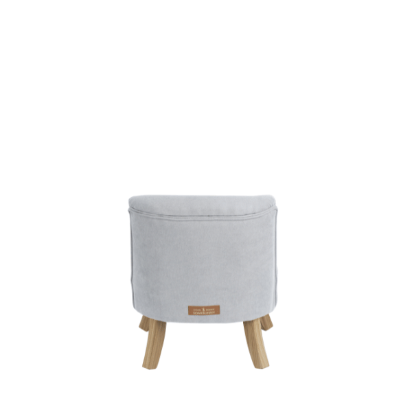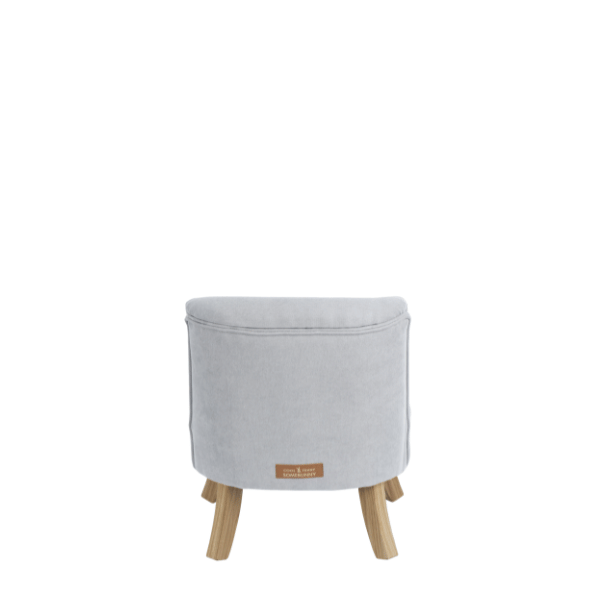 Fotelik opiera się na solidnych, ręcznie wykonanych nóżkach z prawdziwego drewna. Dzięki nim jest stabilny, trwały i pięknie się prezentuje w każdym wnętrzu.