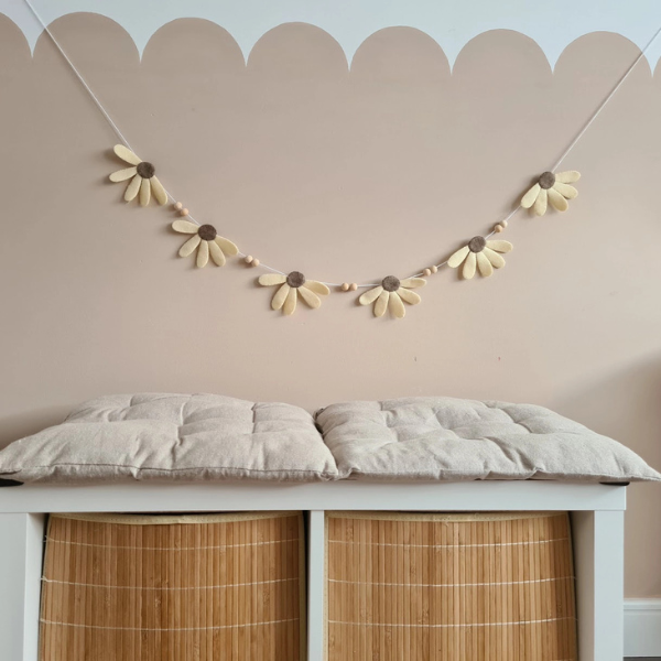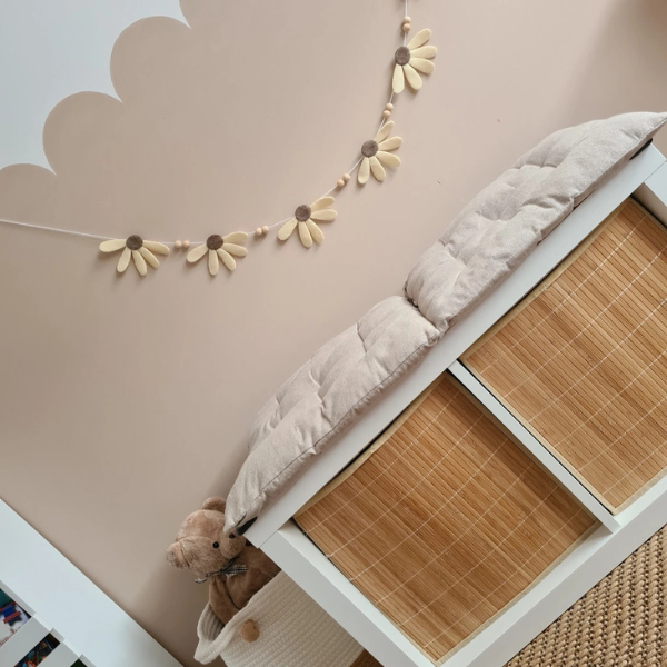 Girlanda Kwiaty Boho doskonale sprawdzi się jako ozdoba łóżeczka, ściany, baldachimu lub półki. To uniwersalna dekoracja, która rośnie razem z dzieckiem – subtelna w pokoju niemowlęcia, a w późniejszych latach stanie się uroczym dodatkiem do pokoju starszej dziewczynki. Dzięki swojej delikatności i naturalnym materiałom wprowadzi do wnętrza przytulność, spokój i odrobinę boho-magii.