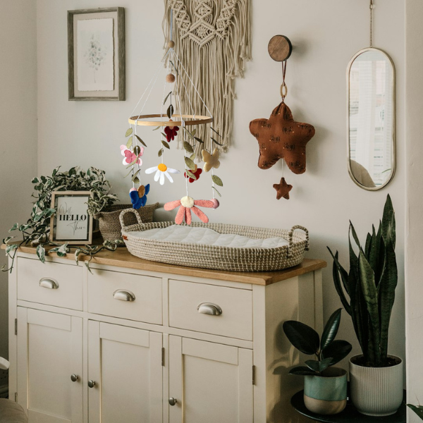 Dzięki swojej radosnej, a jednocześnie subtelnej kolorystyce, karuzela doskonale komponuje się z wnętrzami urządzonymi w stylu boho, skandynawskim lub klasycznym. Może stanowić zarówno ozdobę nad łóżeczkiem, jak i piękny akcent w kąciku do zabawy czy przy przewijaku. To dekoracja, która wprowadza do dziecięcego pokoju odrobinę wiosennej magii każdego dnia.