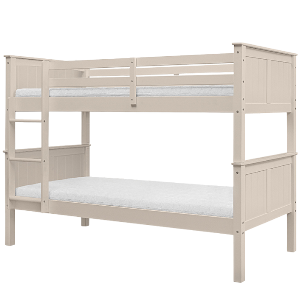Łóżko piętrowe COLLET Duo w kolorze kaszmir / beż to idealna propozycja dla rodziców, którzy cenią elegancję, funkcjonalność i spokojne, neutralne barwy we wnętrzach dziecięcych. Ten delikatny odcień wprowadza do pokoju ciepło, równowagę i ponadczasową estetykę, idealnie komponując się z naturalnym drewnem, pastelami lub bielą.