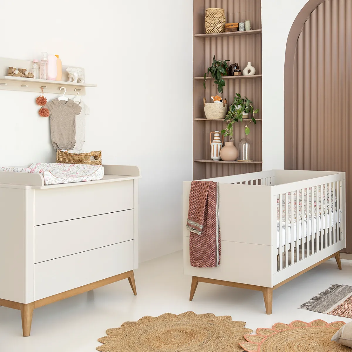 Komoda świetnie komponuje się z innymi meblami z kolekcji Pinio Seth, tworząc spójne, eleganckie i praktyczne wnętrze dziecięce.