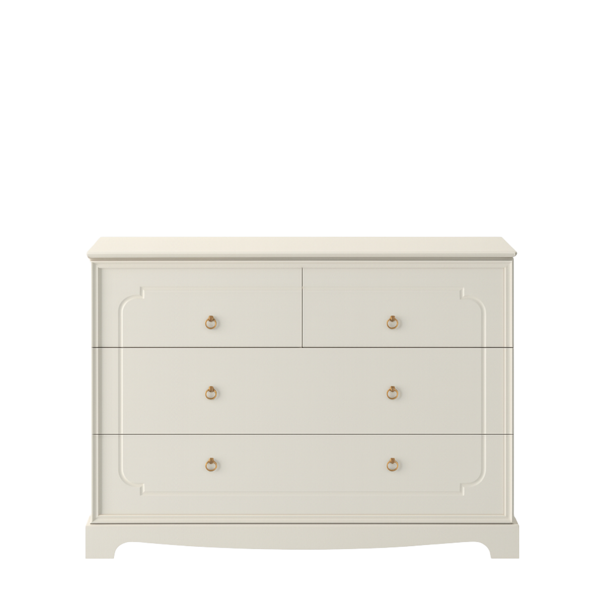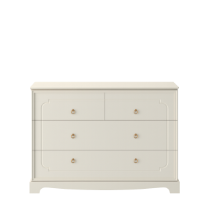 Komoda dziecięca Bellamy Royal Latte 4-szufladowa to elegancki i funkcjonalny mebel, który pomaga stworzyć uporządkowaną, stylową i wygodną przestrzeń w pokoju niemowlęcia, starszego dziecka, rodzeństwa, a także w sypialni. Klasyczna forma, subtelne frezowania i ciepły odcień latte sprawiają, że komoda pięknie prezentuje się w przytulnych, dopracowanych i ponadczasowych wnętrzach.