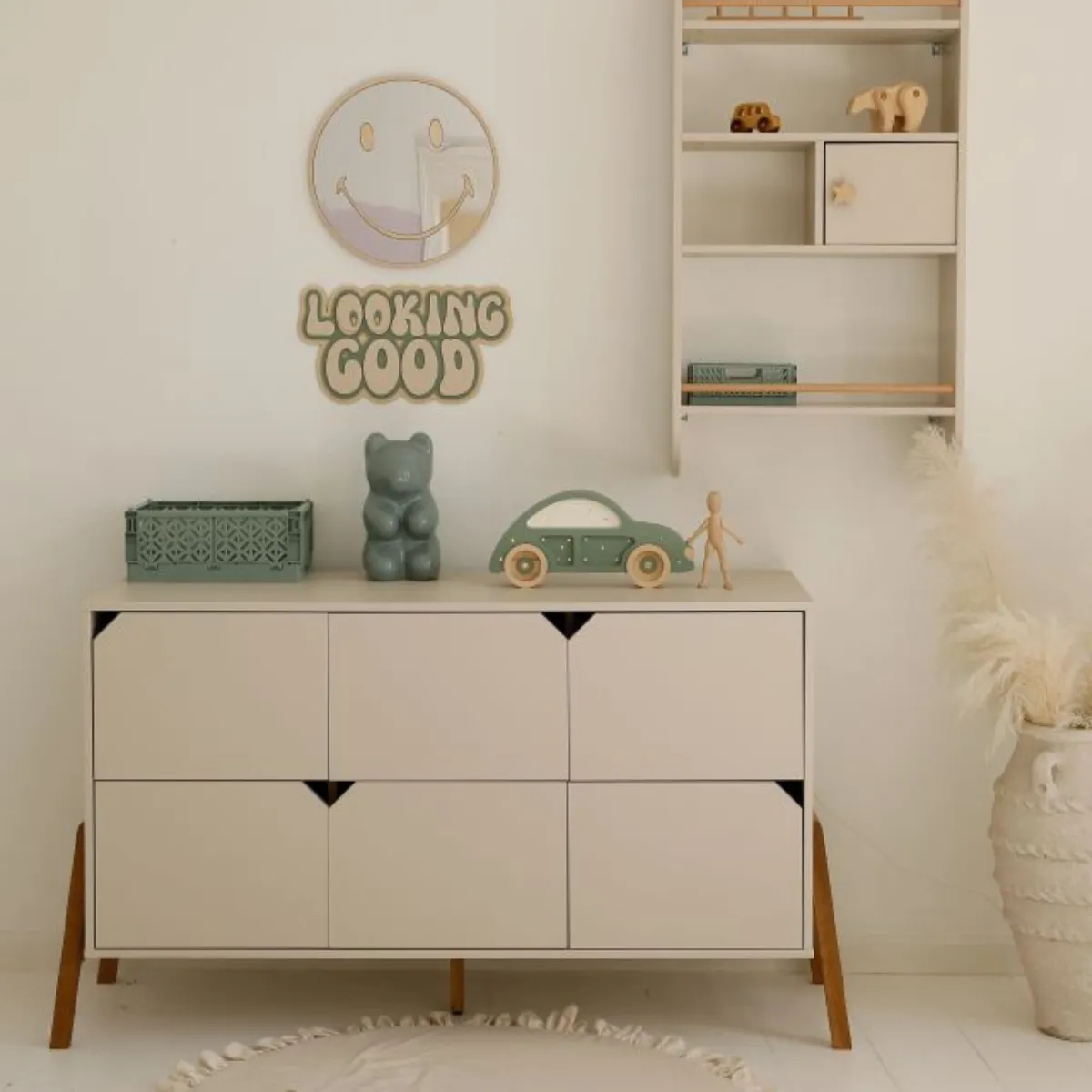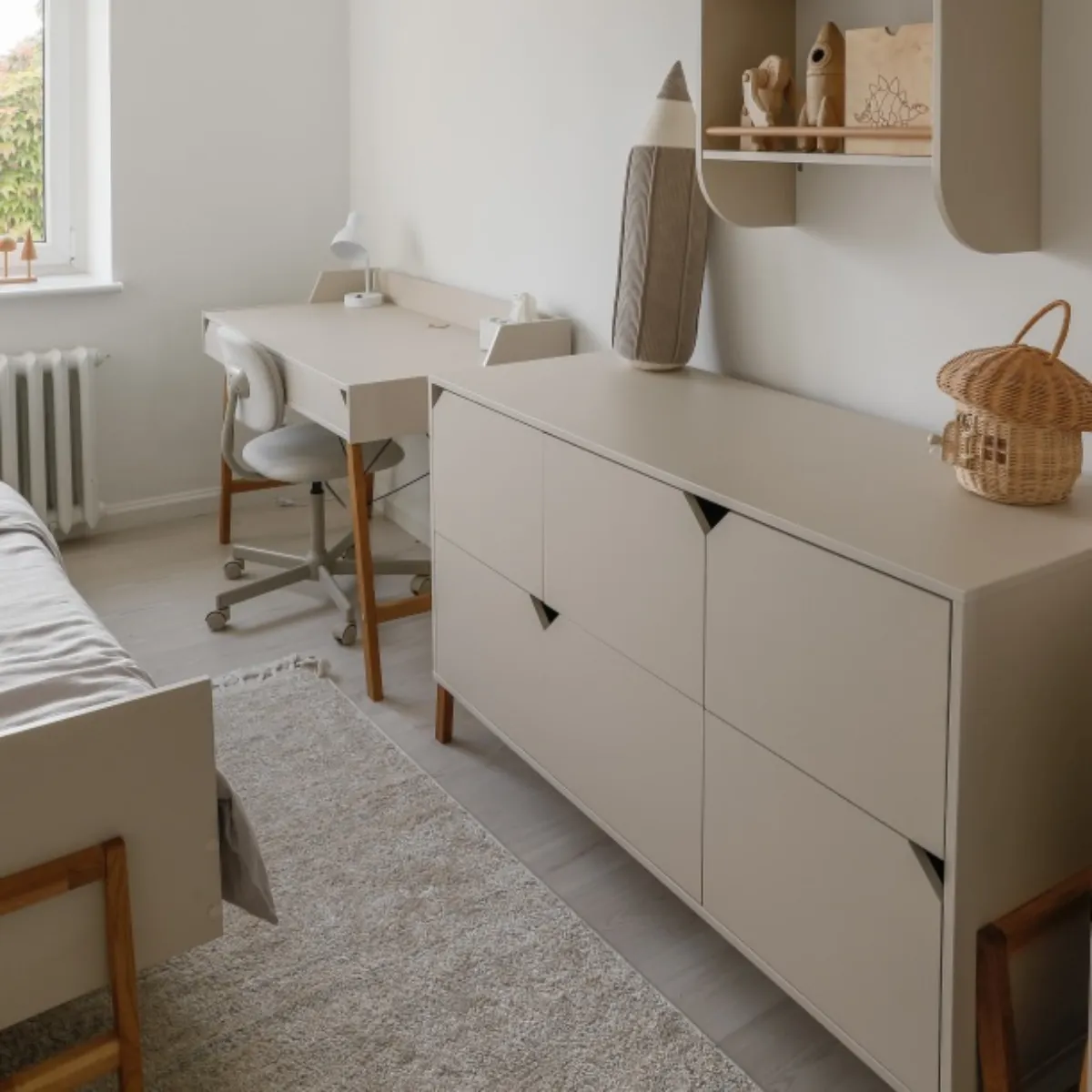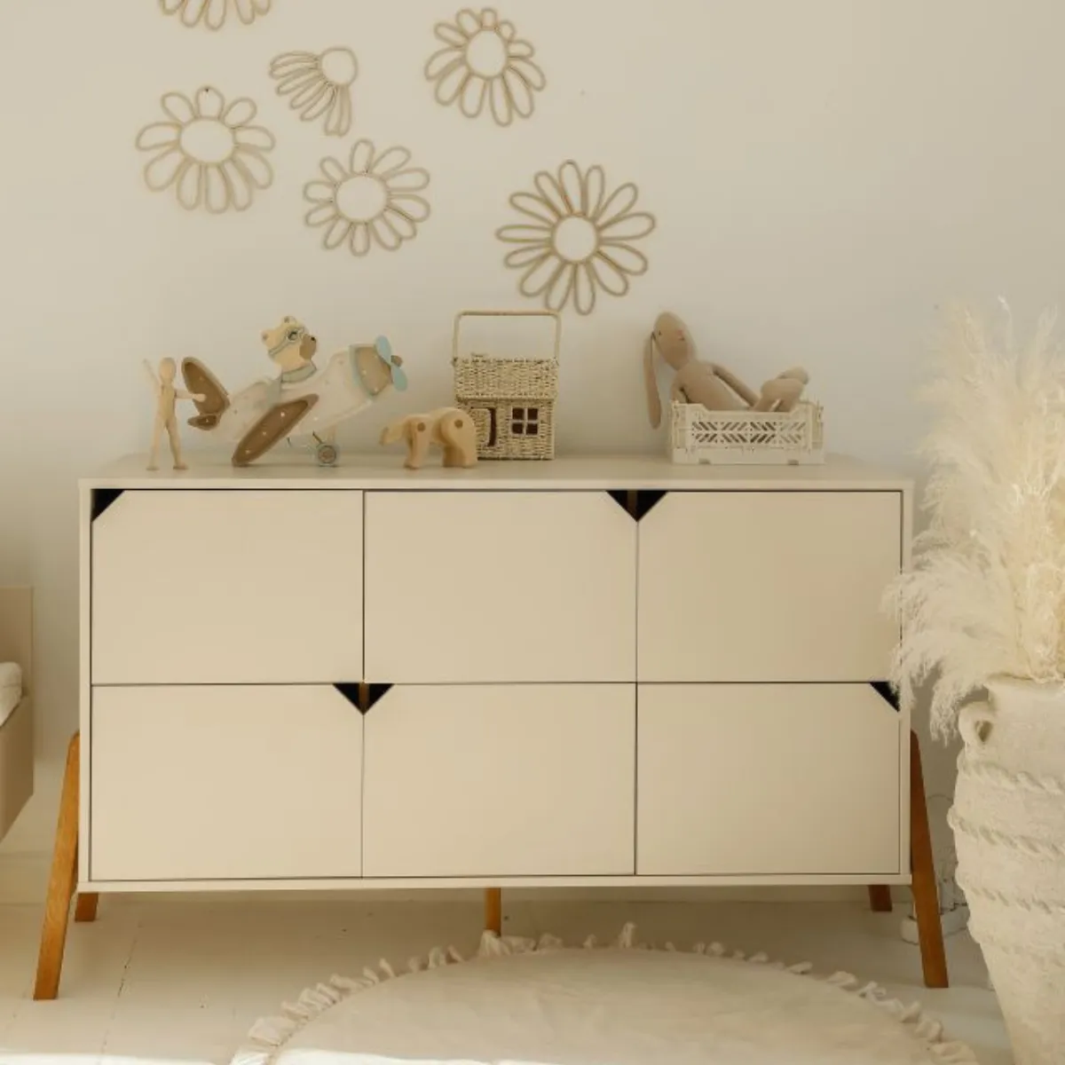 Połączenie dużej pojemności, funkcjonalności i wyjątkowego designu sprawia, że komoda Bellamy Lotta latte to idealny wybór do nowoczesnego pokoju dziecka.