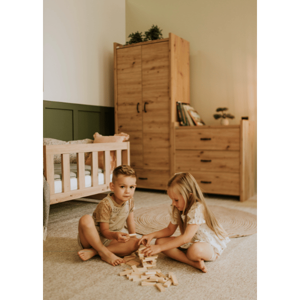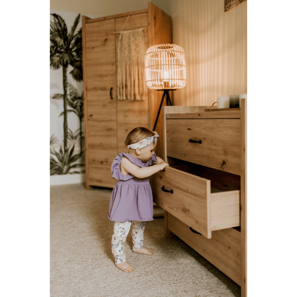 Komoda AMELIA to mebel zaprojektowany i wyprodukowany w Polsce, z dbałością o detale i bezpieczeństwo użytkowania. Naturalne wybarwienie dębu nie tylko ociepla przestrzeń, ale też maskuje drobne ślady użytkowania, co czyni ją szczególnie praktycznym wyborem do dziecięcego pokoju. To solidny, estetyczny i uniwersalny mebel, który z powodzeniem odnajdzie się także w innych pomieszczeniach domu – np. w przedpokoju czy sypialni – wszędzie tam, gdzie liczy się funkcjonalność i spokojny, naturalny styl.