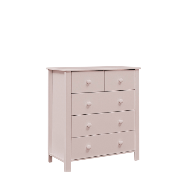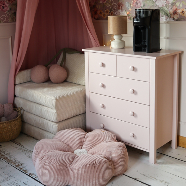 Wysoka komoda COLLET w kolorze pudrowego różu to uroczy i funkcjonalny element wyposażenia dziecięcego pokoju, który zachwyca subtelną kolorystyką i klasyczną formą. Jej delikatny odcień różu wprowadza do wnętrza ciepło, lekkość i przytulny klimat – idealny do pokoju dziewczynki w każdym wieku. Styl skandynawski, na którym oparta jest cała kolekcja, sprawia, że mebel prezentuje się elegancko, a zarazem ponadczasowo..