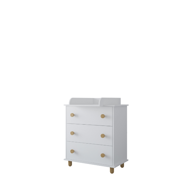 Jeśli planujesz ją używać już od pierwszych dni, możesz wybrać wersję z przewijakiem, który stabilnie montuje się na blacie. Gdy maluch podrośnie — przewijak łatwo zdejmiesz, a komoda od razu zyskuje bardziej „dorosły” charakter. Dzięki temu DOTS pozostaje funkcjonalna na długie lata, bez potrzeby wymiany mebli wraz z kolejnymi etapami rozwoju dziecka.