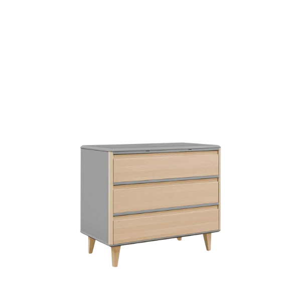 Komoda wysoka 3-szufladowa z kolekcji Loopi to stylowe i funkcjonalne rozwiązanie do pokoju dziecka. Trzy pojemne szuflady z frontami z brzozowego drewna oferują dużo miejsca na ubrania i akcesoria. Zaokrąglone krawędzie i smukłe nogi dodają jej lekkości i subtelnego uroku retro. Cichy domyk sprawia, że korzystanie z komody jest bezgłośne i komfortowe. Możliwość dodania przewijaka czyni ją meblem, który rośnie razem z dzieckiem.