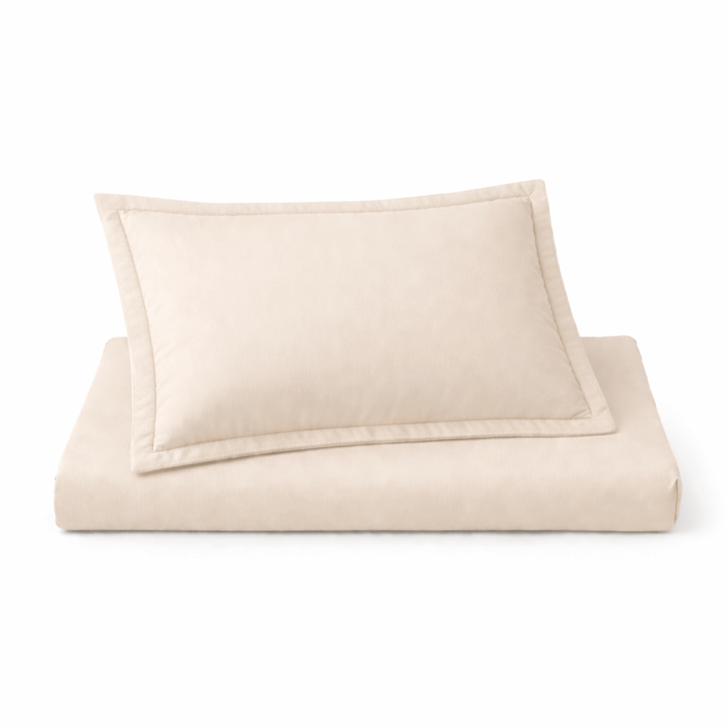 Pierwsza opcja to komplet samych poszewek, który zawiera poszewkę na poduszkę ozdobioną delikatną falbanką oraz poszewkę na kołderkę. Poszewka na poduszkę posiada praktyczną zakładkę z tyłu, dzięki której poduszka pozostaje na swoim miejscu podczas snu.