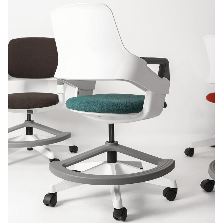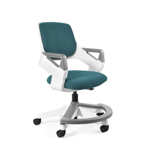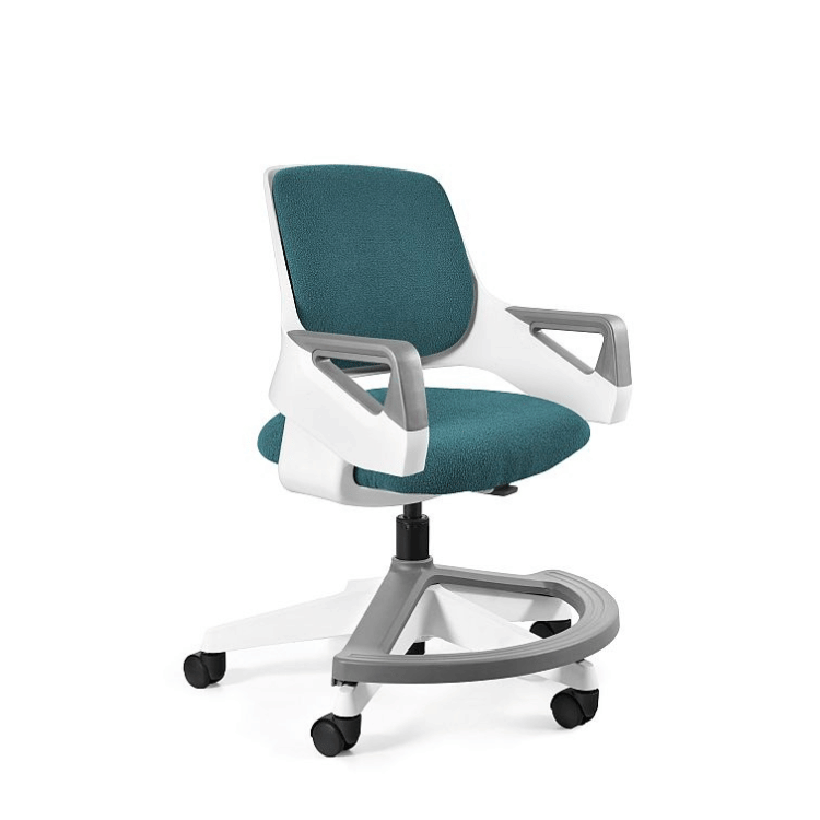 - podnóżek dla małych dzieci – komfort od pierwszych lat Umieszczony na wysokości 14 cm od podłoża, pozwala wygodnie oprzeć stopy nawet przedszkolakom. Zakres odległości podnóżek–siedzisko: 24–36 cm. Dla starszych dzieci – możliwość ustawienia krzesła tak, by podnóżek nie przeszkadzał w opieraniu nóg o podłogę.