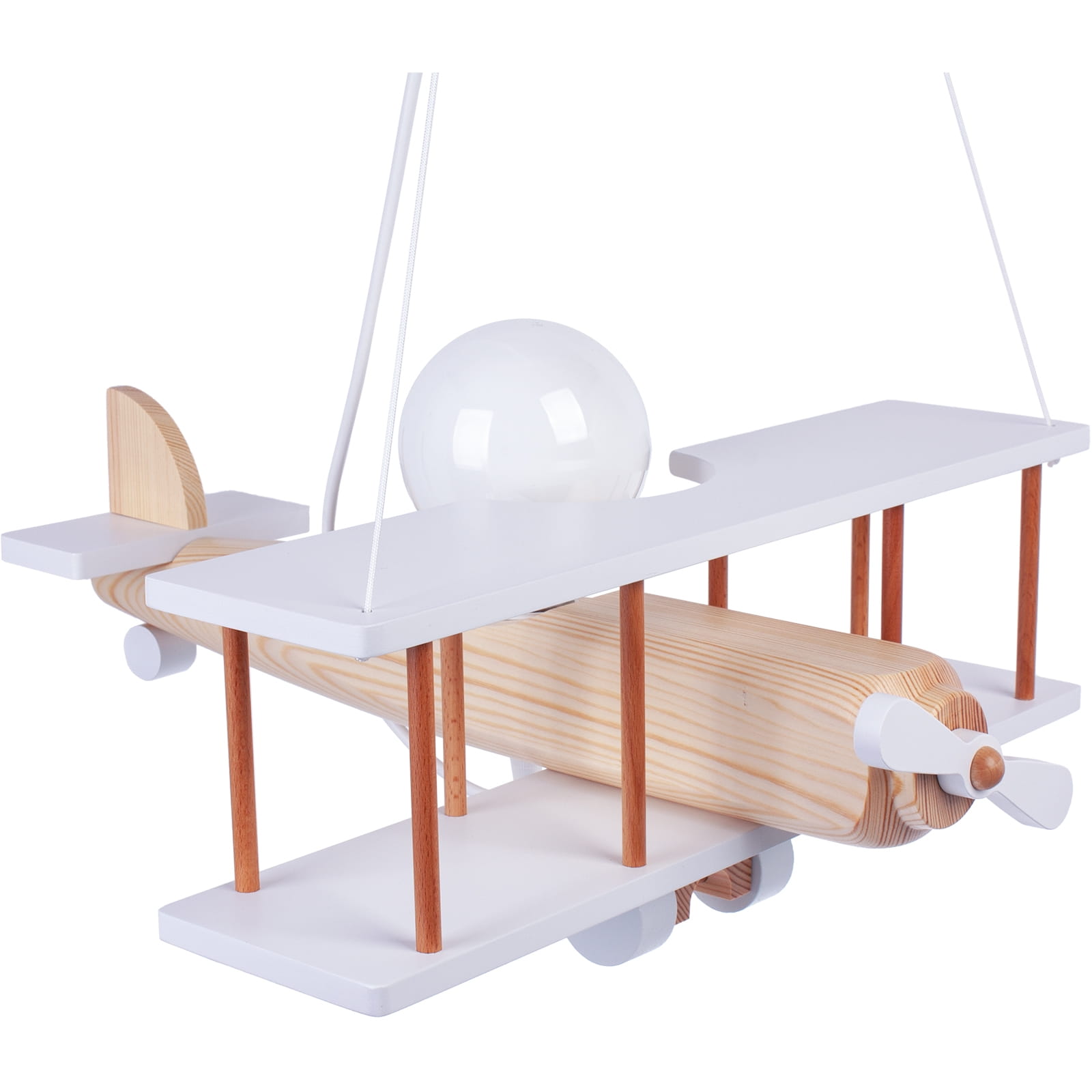 dziecięca stanowi intrygującą propozycję oświetlenia, zaprojektowaną z myślą o przestrzeni pokoju dziecięcego. Jej unikalny design oparty na wiszącym drewnianym aeroplanie przyciąga uwagę najmłodszych, oferując nie tylko funkcjonalność, ale także estetyczny i edukacyjny aspekt. Projektanci poświęcili szczególną uwagę najmniejszym detalom, tak aby lampa nie tylko cieszyła oko, ale również stymulowała kreatywność i rozwijała zainteresowania dziecka. Wykonana z drewna sosnowego, jest nie tylko atrakcyjna wizualnie, ale także solidna i trwała. Zastosowanie naturalnych wodnych farb pokrywających lampę LED podkreśla aspekt bezpieczeństwa, eliminując obawy dotyczące szkodliwych substancji chemicznych czy barwników.