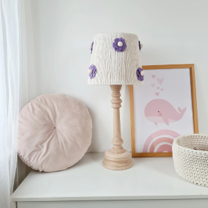 Lampka Fioletowe stokrotki to polskie rękodzieło, które łączy naturalne materiały, wyjątkowy design i funkcjonalność. Wybierz oświetlenie, które wniesie do wnętrza Twojej córeczki spokój, harmonię i odrobinę bajkowego uroku.