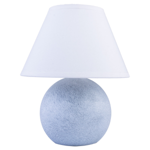 Podstawa lampki w kształcie kuli, wykonana z litego drewna i wykończona w eleganckim kolorze szarego marmuru, nadaje jej nowoczesny i ponadczasowy charakter. Biały, bawełniany abażur subtelnie rozprasza światło, dzięki czemu lampka nie oślepia i nie rozświetla nadmiernie całego pomieszczenia.