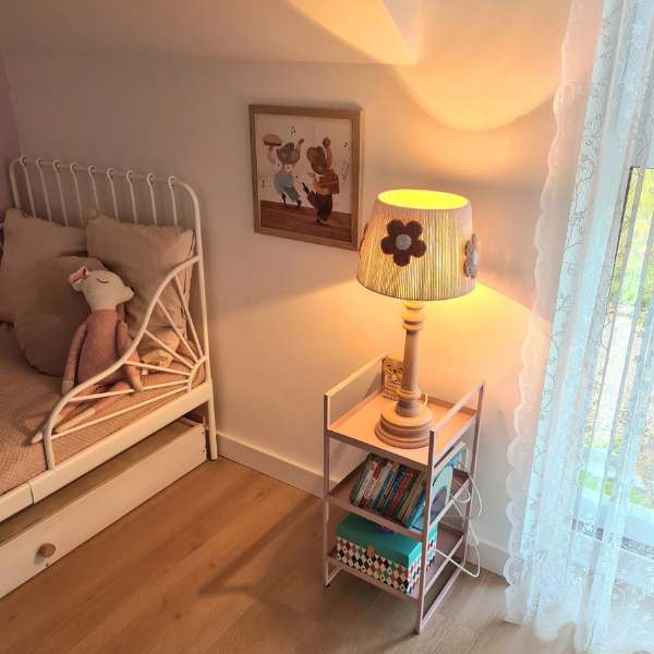 Lampka doskonale sprawdzi się w pokoju dziecka, niemowlaka lub w kąciku do czytania, wprowadzając przytulne, ciepłe światło sprzyjające relaksowi i wyciszeniu. Jej subtelna kolorystyka idealnie komponuje się z wnętrzami w stylu boho, skandynawskim i klasycznym.