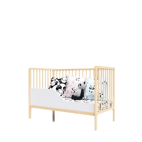 Łóżeczko może rosnąć razem z maluchem – istnieje możliwość zamontowania barierki zabezpieczającej, dzięki której łóżeczko zmienia się w praktyczny tapczanik. To doskonałe rozwiązanie przejściowe między łóżeczkiem niemowlęcym a klasycznym łóżkiem dziecięcym, dające dziecku poczucie ciągłości i komfortu.