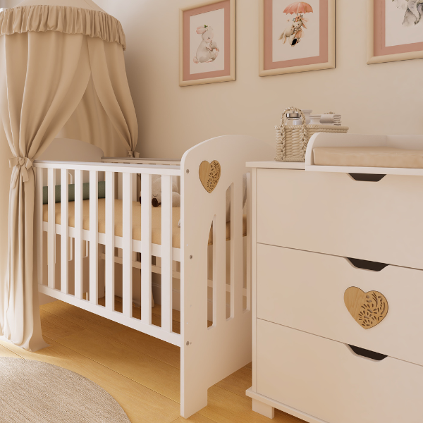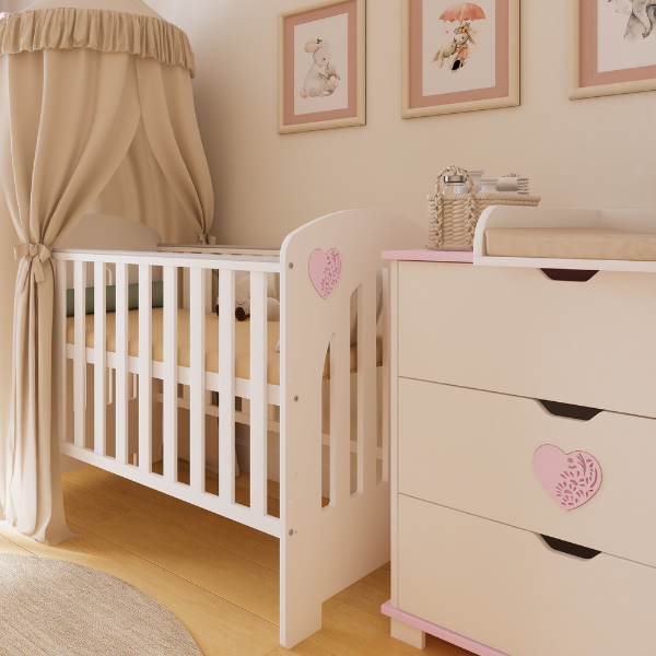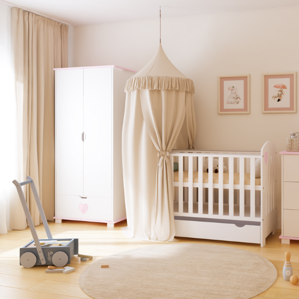 Kolekcja SERDUSZKO została stworzona po to, by rozświetlić pokój maluszka i wprowadzić do niego ciepło oraz radość. Subtelna dekoracja w formie serduszka oraz wygodne wycięcia we frontach szuflad nadają jej wyjątkowego charakteru, łącząc nowoczesny design z funkcjonalnością. To meble zaprojektowane z myślą o komforcie dzieci i estetyce współczesnych wnętrz, które rosną razem z dzieckiem.