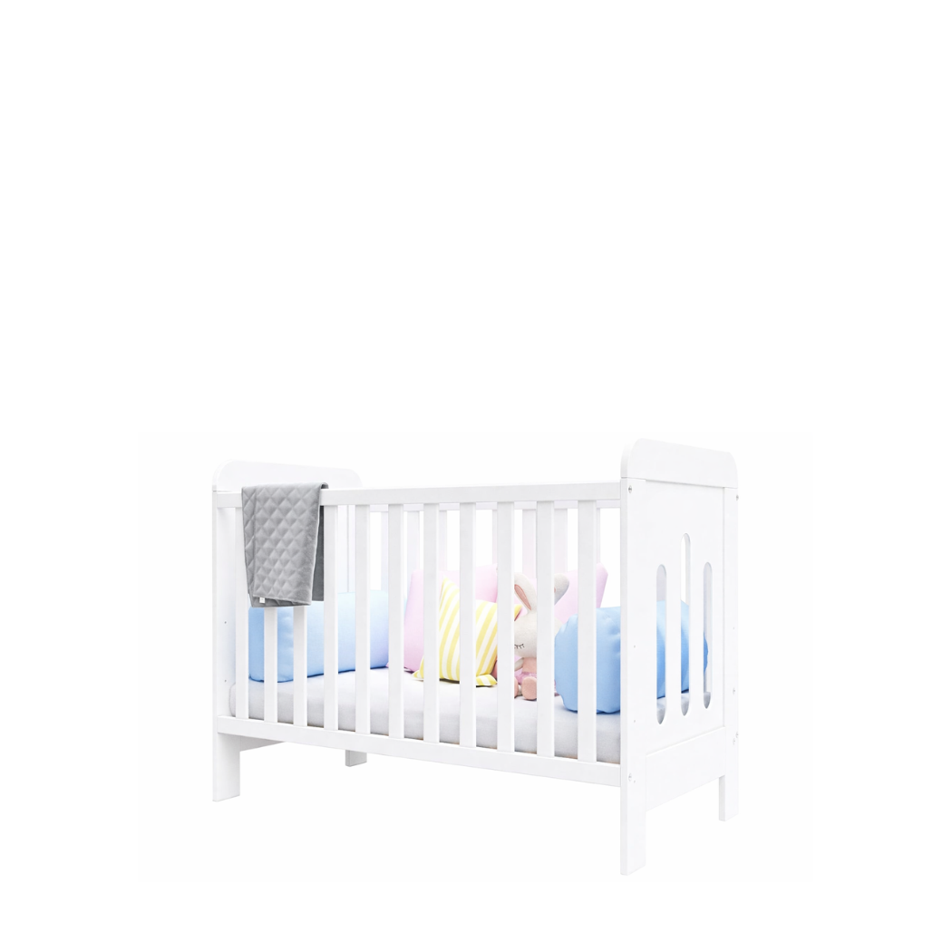 to funkcjonalne i estetyczne rozwiązanie stworzone z myślą o dzieciach od pierwszych dni życia aż po wiek przedszkolny. Dzięki powiększonemu wymiarowi 60x120 cm model ten doskonale sprawdzi się jako łóżeczko „na dłużej”, zapewniając dziecku komfortowy sen na każdym etapie rozwoju. Biała kolorystyka nadaje całości lekkości i sprawia, że łóżeczko idealnie komponuje się zarówno z nowoczesnymi, jak i klasycznymi aranżacjami pokoju dziecięcego.