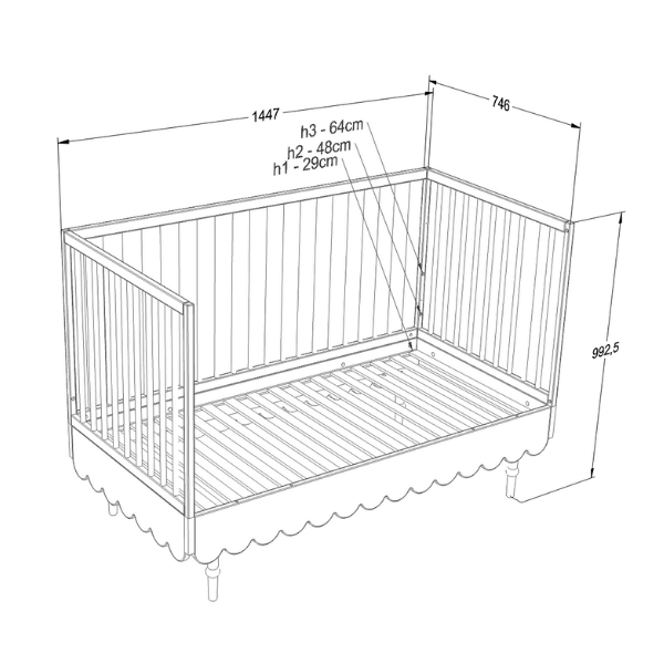 - dodatkowe elementy umożliwiające zmianę łóżeczka w tapczanik lub sofę dla starszego dziecka i stanowiące jednocześnie zabezpieczenie przed jego wypadnięciem