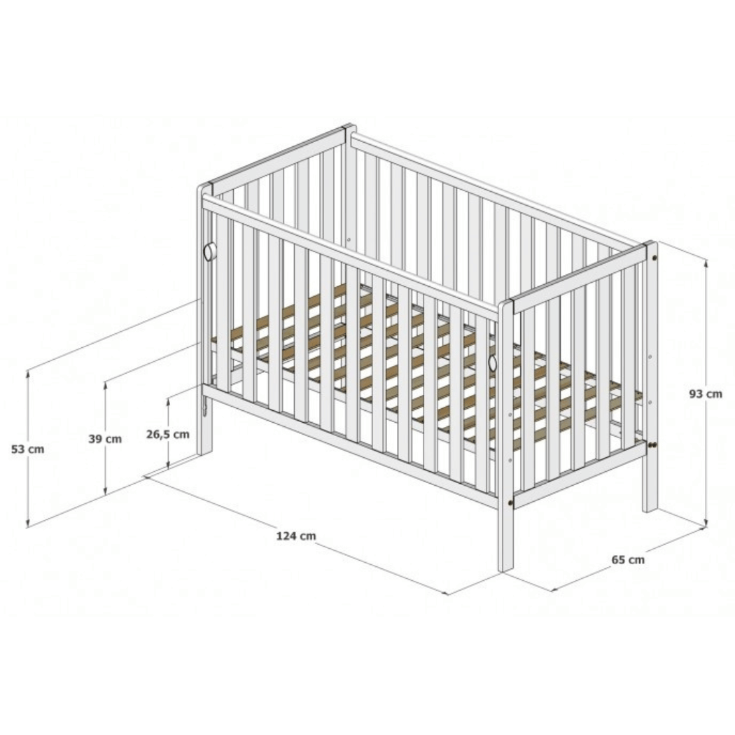 - Opcjonalne kółka z hamulcem — łatwo przesuniesz łóżeczko tam, gdzie potrzebujesz