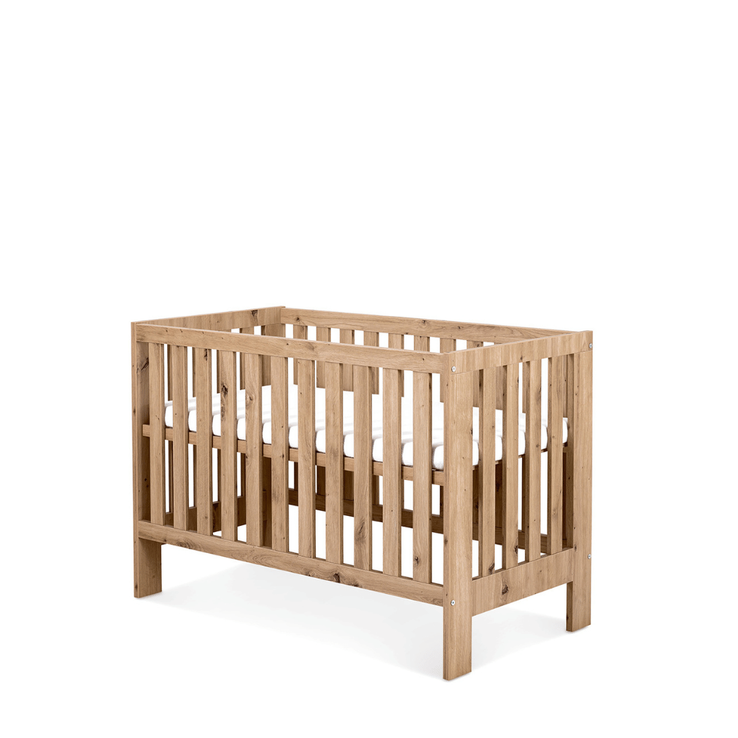 Łóżeczko dziecięce AMELIA II to niezawodny wybór dla rodziców, którzy szukają bezpiecznego, funkcjonalnego i pięknie wykonanego mebla do pokoju niemowlaka. Zgodne z rygorystyczną normą bezpieczeństwa PN-EN 716-1+AC:2019-07, łóżeczko zapewnia maluszkowi komfortowy sen i ochronę od pierwszych dni życia. Wyprodukowane w Polsce, wykonane z wysokiej jakości płyty MDF i płyty meblowej, mebel zachwyca naturalnym wykończeniem w kolorze dębu, które świetnie wpisuje się w nowoczesne i skandynawskie wnętrza.