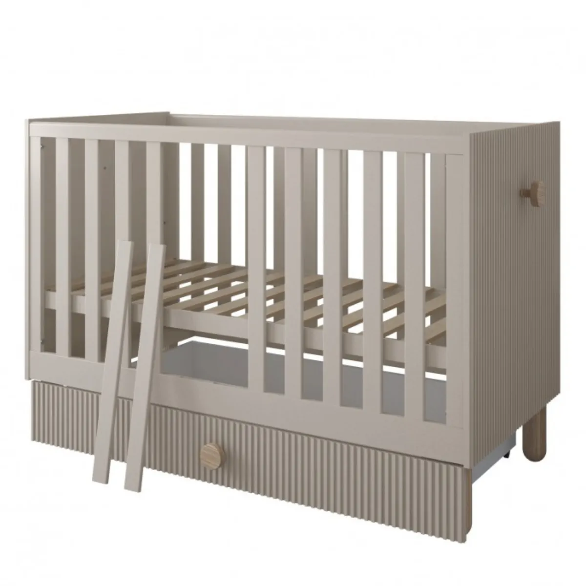 Łóżeczko LOFT kaszmir zapewnia bezpieczny i komfortowy sen, a jednocześnie pomaga utrzymać porządek – dzięki praktycznej szufladzie wszystko, co potrzebne, masz zawsze pod ręką.