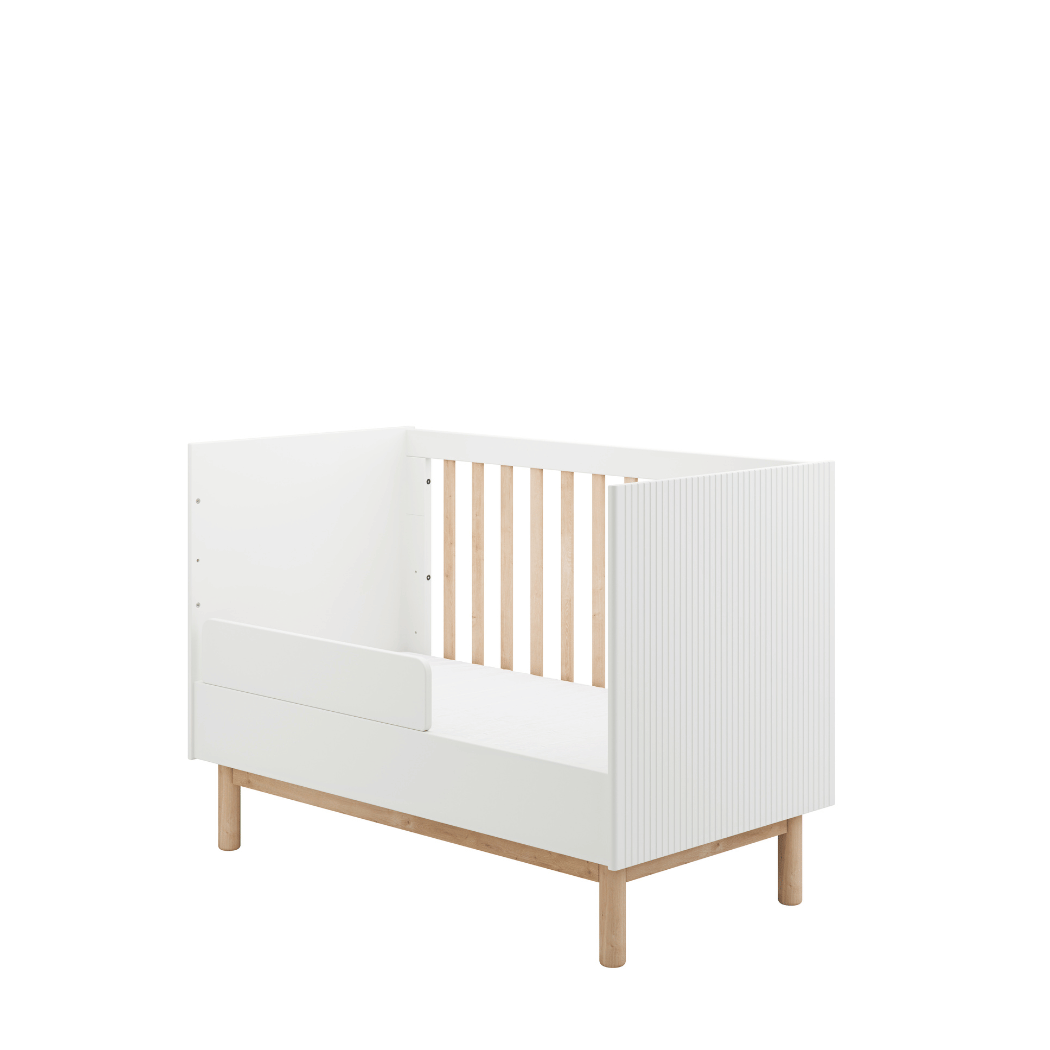 Ryflowane detale, solidna konstrukcja i staranne wykończenie nadają łóżeczku wyjątkowego charakteru i sprawiają, że doskonale wpisuje się w spójną aranżację pokoju dziecka.
