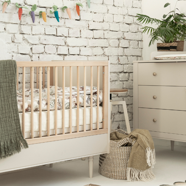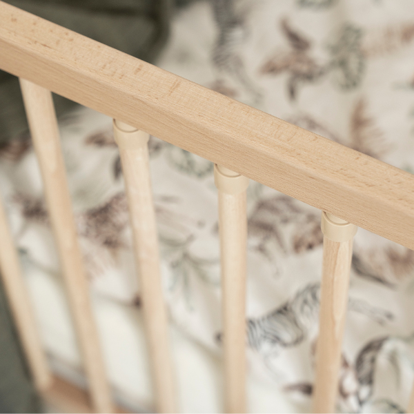 Złote uchwyty, lekkie bukowe nóżki i dopracowane proporcje sprawiają, że łóżeczko idealnie wpisuje się w styl nowoczesny, japandi, skandynawski i klasyczny. To rozwiązanie dla osób, które nie chcą kompromisów między designem a codzienną wygodą. Każdy detal został zaprojektowany tak, aby mebel był nie tylko piękny, ale przede wszystkim praktyczny.