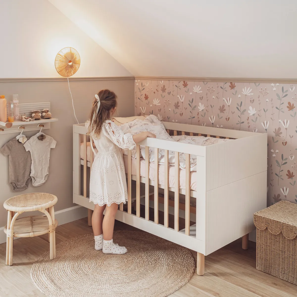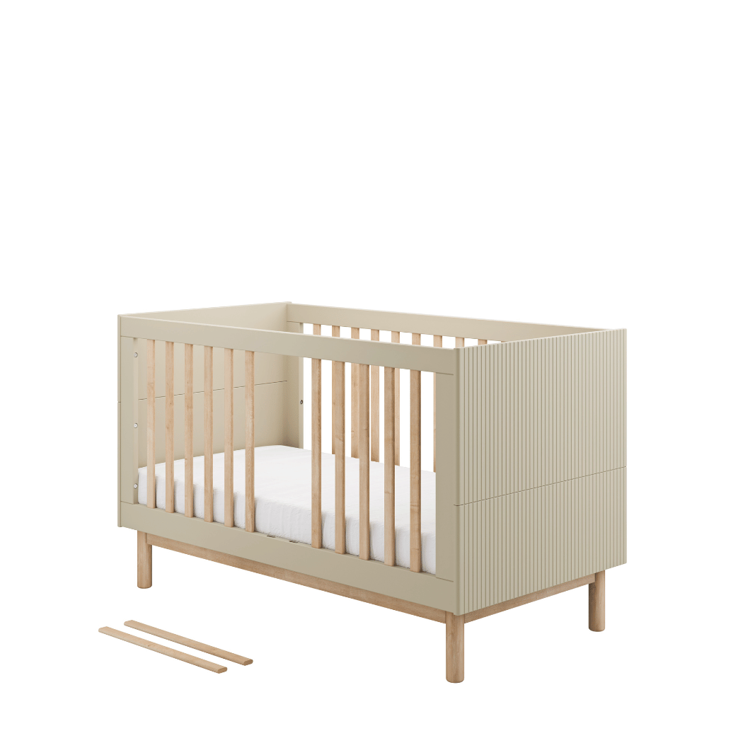 Ryflowane detale, solidna konstrukcja i staranne wykończenie nadają łóżeczku wyjątkowego charakteru i sprawiają, że doskonale wpisuje się w spójną aranżację pokoju dziecka.