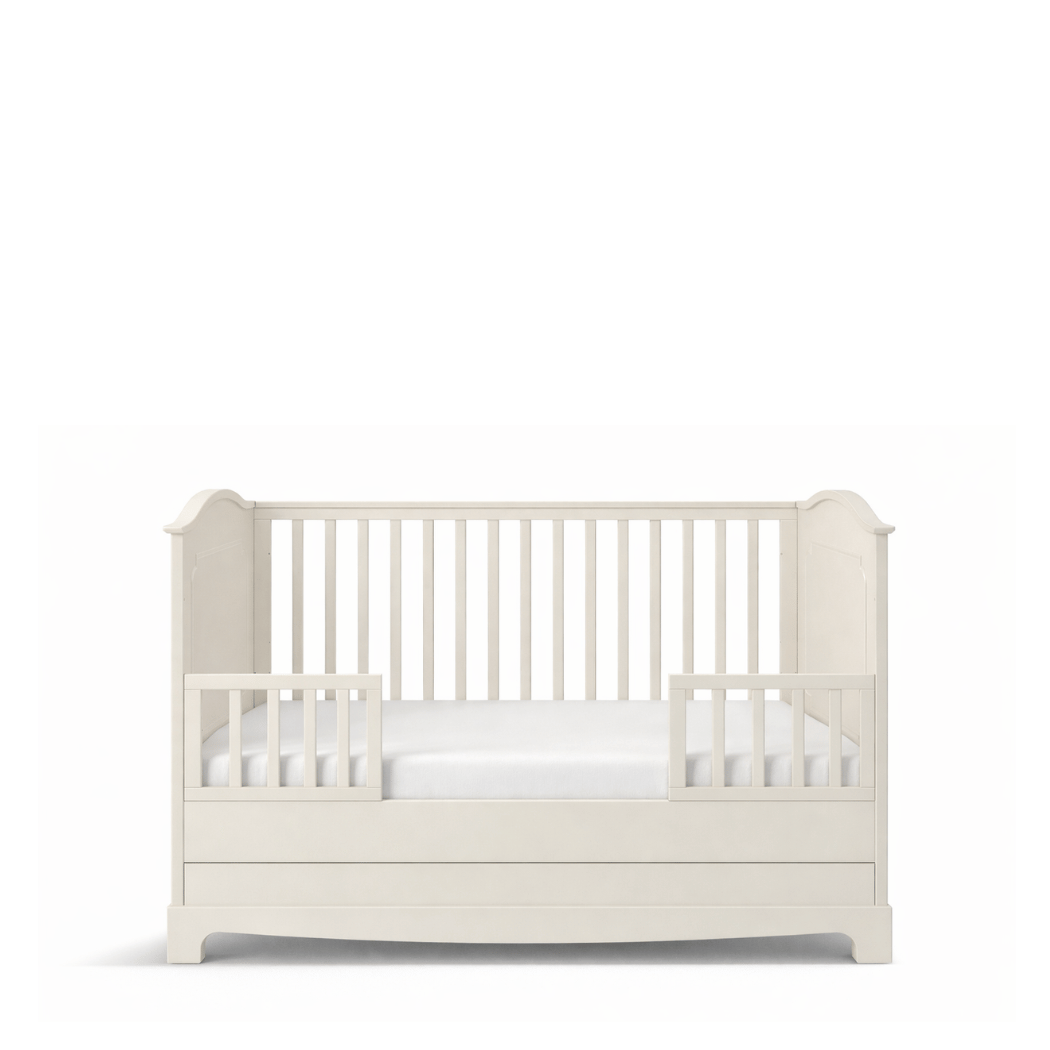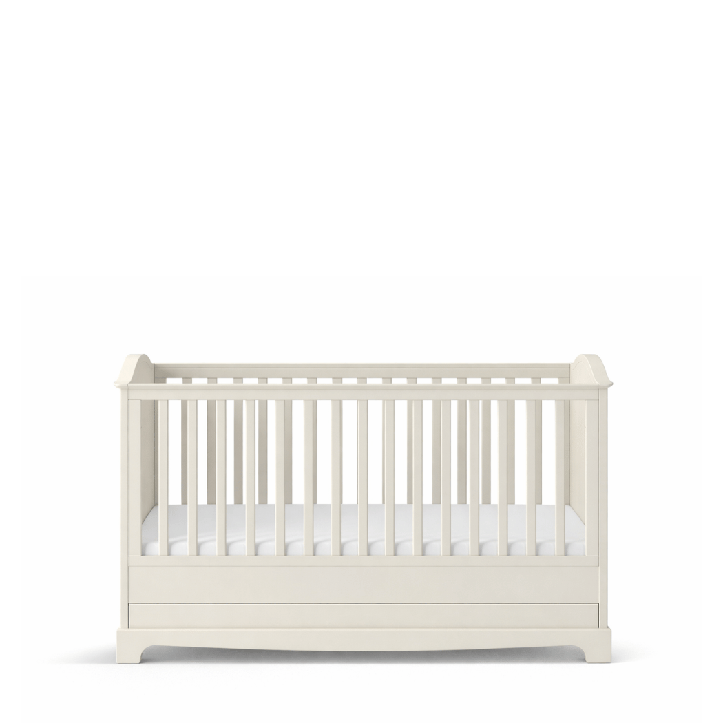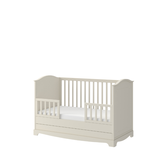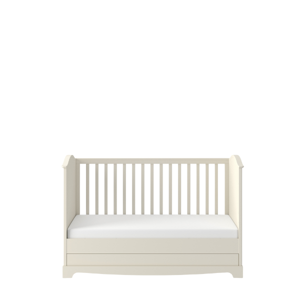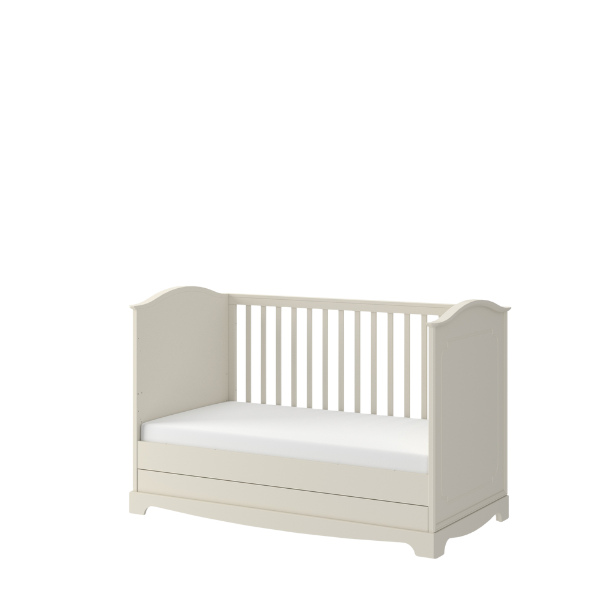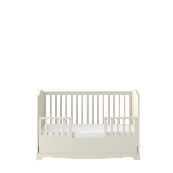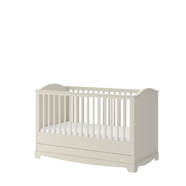 Model łączy estetykę z codzienną wygodą użytkowania. 3 wyjmowane szczebelki, 3 poziomy położenia stelaża pod materac oraz pojemna szuflada ułatwiają dopasowanie łóżeczka do etapu rozwoju dziecka i pomagają wygodnie przechowywać pościel, tekstylia oraz wszystkie najpotrzebniejsze akcesoria. To idealne łóżeczko do pokoju dziecka dla rodziców, którzy cenią funkcjonalność, bezpieczeństwo i piękne wykończenie.