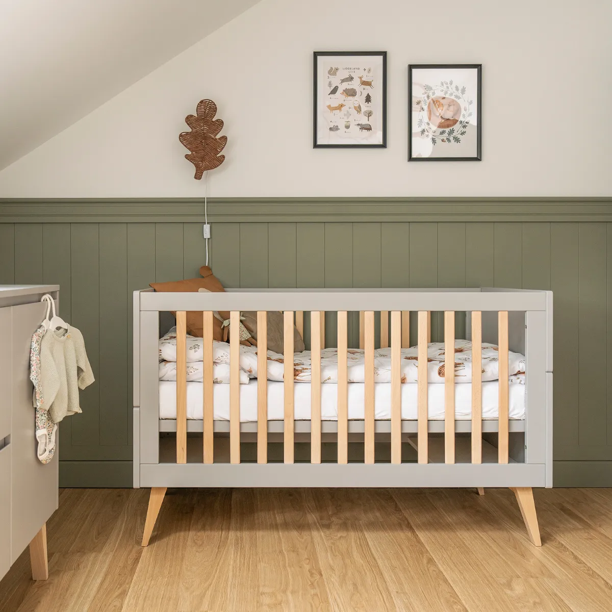Stonowany, szary kolor świetnie wpisuje się w nowoczesne aranżacje i daje dużą swobodę w doborze dodatków. Łóżeczko dobrze wygląda zarówno w pokoju niemowlaka, jak i starszego dziecka, dzięki czemu nie wymaga zmiany wraz z wiekiem.
