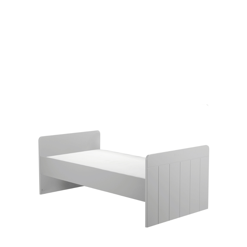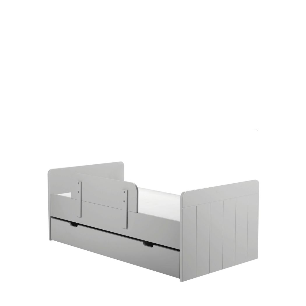 To szare łóżeczko-tapczanik 140x70, które łączy bezpieczeństwo, wygodę użytkowania i ponadczasowy styl kolekcji Calmo.