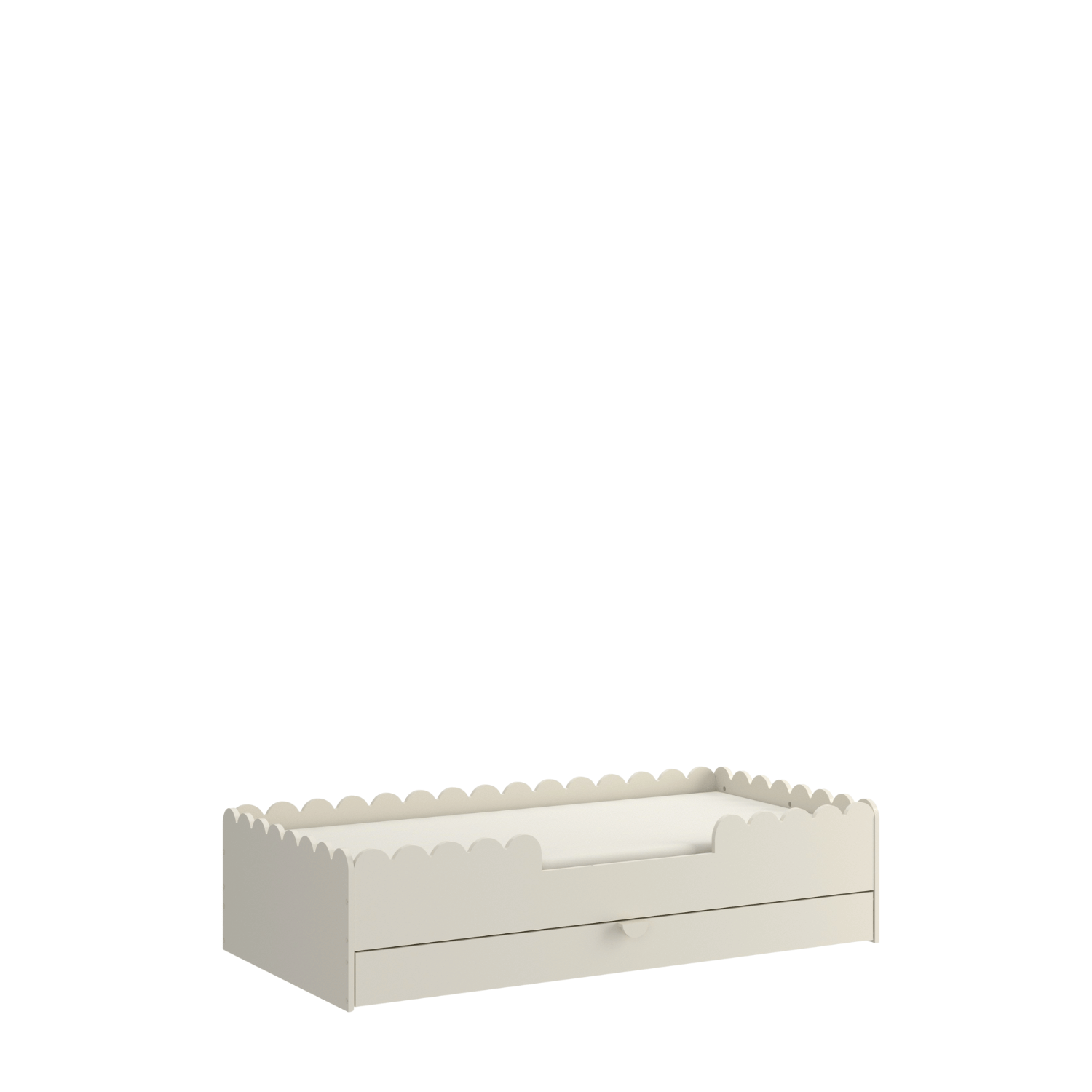 Stałe barierki ochronne na trzech stronach tworzą bezpieczną przestrzeń do snu, a przednie barierki można zdemontować, dopasowując poziom zabezpieczenia do etapu rozwoju dziecka. Dzięki temu łóżko pozostaje funkcjonalne przez dłuższy czas i rośnie razem z maluchem.