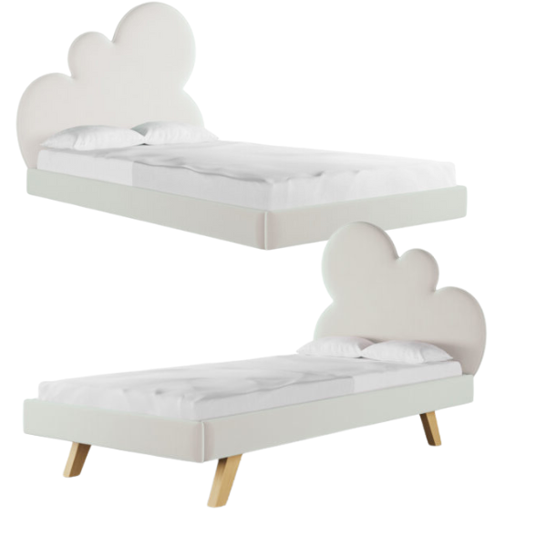Łóżko dziecięce Chmurka CLOUD Legs Texti to wyjątkowy mebel, który wprowadza do dziecięcego pokoju odrobinę bajkowej magii i przytulności. Charakterystyczny zagłówek w kształcie puszystej chmurki to nie tylko element dekoracyjny, ale także miękkie i wygodne oparcie, które rozbudza dziecięcą wyobraźnię i tworzy idealne warunki do snu i relaksu.