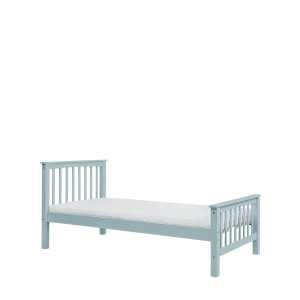Niebieskie łóżko Collet 90x200 cm to idealny wybór do dziecięcego pokoju, w którym liczy się zarówno komfort, jak i ponadczasowy styl. Jego pastelowy, chłodny odcień niebieskiego wprowadza do wnętrza spokój i harmonię – sprzyja wyciszeniu, odpoczynkowi i tworzy przyjazną atmosferę, która doskonale sprawdzi się w codziennym funkcjonowaniu dziecka.